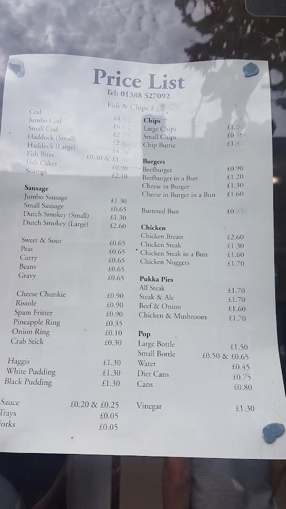 Craven's Fish Shop is located in the charming town of Wolsingham, part of Bishop Auckland, a historic area rich in culture and natural beauty. With its wheelchair-accessible facilities and welcoming atmosphere, this family-run shop captures the essence of local dining. The shop occupies a cozy spot on Angate Street, surrounded by picturesque streets that invite exploration before or after your meal. Wolsingham itself boasts lovely walking trails and beautiful countryside views, making this fish shop an ideal stop for tourists enjoying the local scenery. A quick stroll around the area reveals quaint shops and a friendly community atmosphere, making it a perfect location to grab a bite. The shop emphasizes quality and affordability, allowing guests to savor their meals without breaking the bank. It also welcomes families, with a dedicated kids' menu and lots of space for little ones.